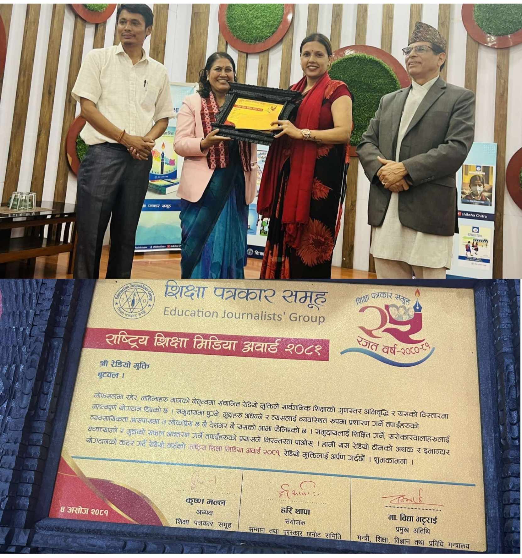 बुटवल । राष्ट्रिय शिक्षा मिडिया अवार्ड २०८१ बाट रेडियो मुक्ती बुटवल नगद सहित सम्मानित भएको छ । शिक्षा पत्रकार समुहले